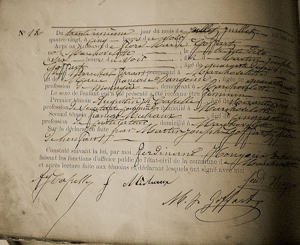 Actes de naissance de la famille Goffart après 1805 by RFG | Jan 10, 2023 | Actes de naissance | 0 commentaires Goffart Flore Marie_naissanceGoffart Zénobe Martin Joseph_naissanceGoffart Nestor Martin Joseph_naissance Retour aux actes de naissance